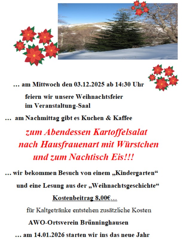 AWO-Ortsverein Brünninghausen meldet: Hier die Bilder von unserer Weihnachtsfeier.